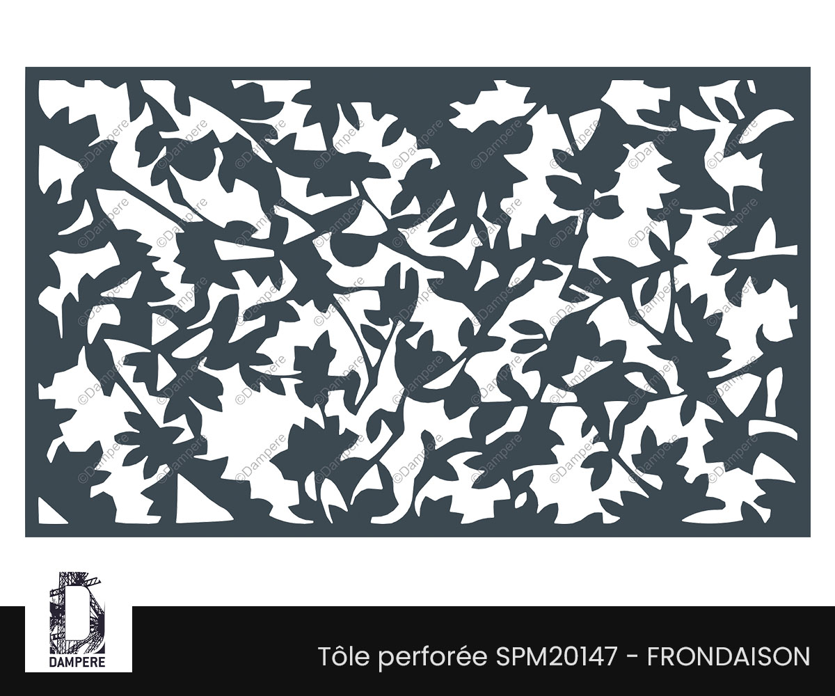 La tôle découpe laser Frondaison présente un motif végétal dense et immersif, composé de milliers de petites feuilles finement découpées, reliées entre elles par un réseau de branches entrecroisées. Ce thème végétal évoque l’abondance d’un feuillage d’été vu à contre-jour, capturant le mouvement délicat des frondaisons dans le vent.
